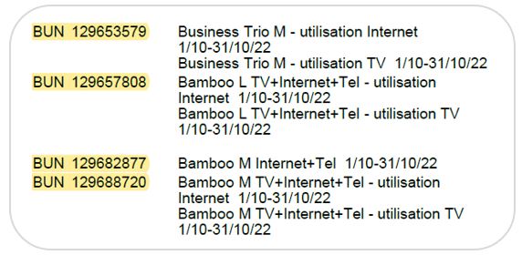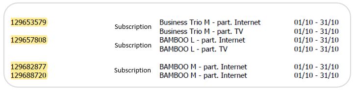 What will be shown under the new billing system (the service number is marked in yellow):